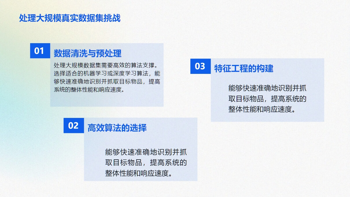 - 智能化水平高:结合机器视觉和机器人技术,该技术可以实现智能化的抓取操作,提高生产线的自动化水平。